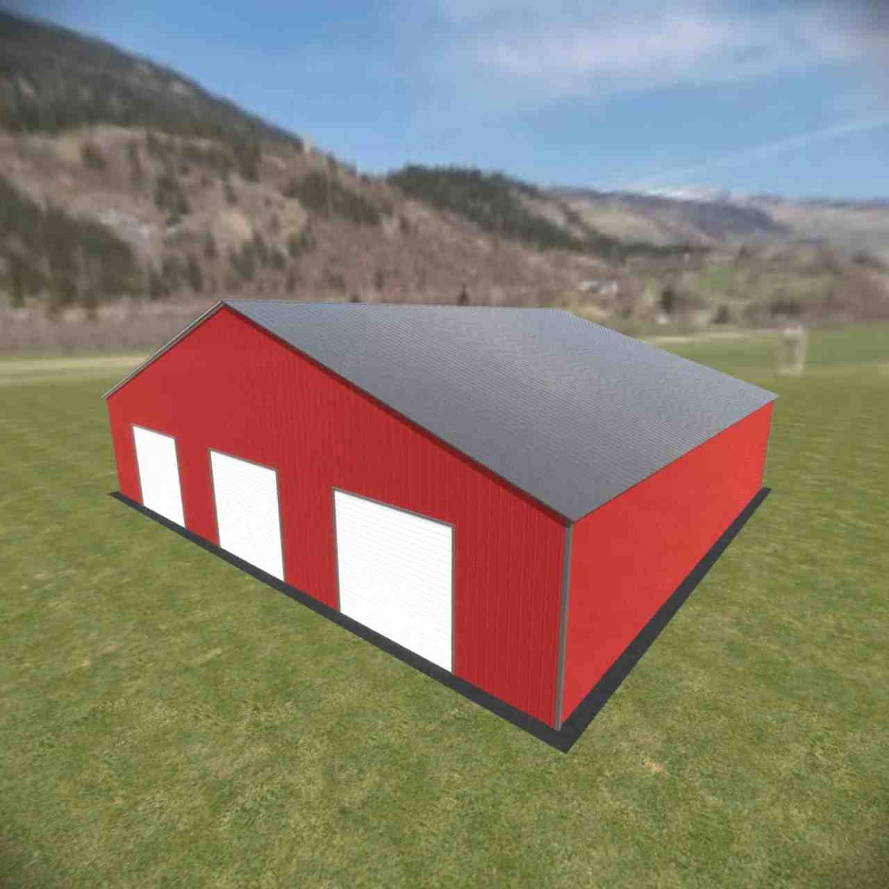 50 wide metal building with 16′ legs and 3 14×14 garage doors with optional deluxe two-tone.