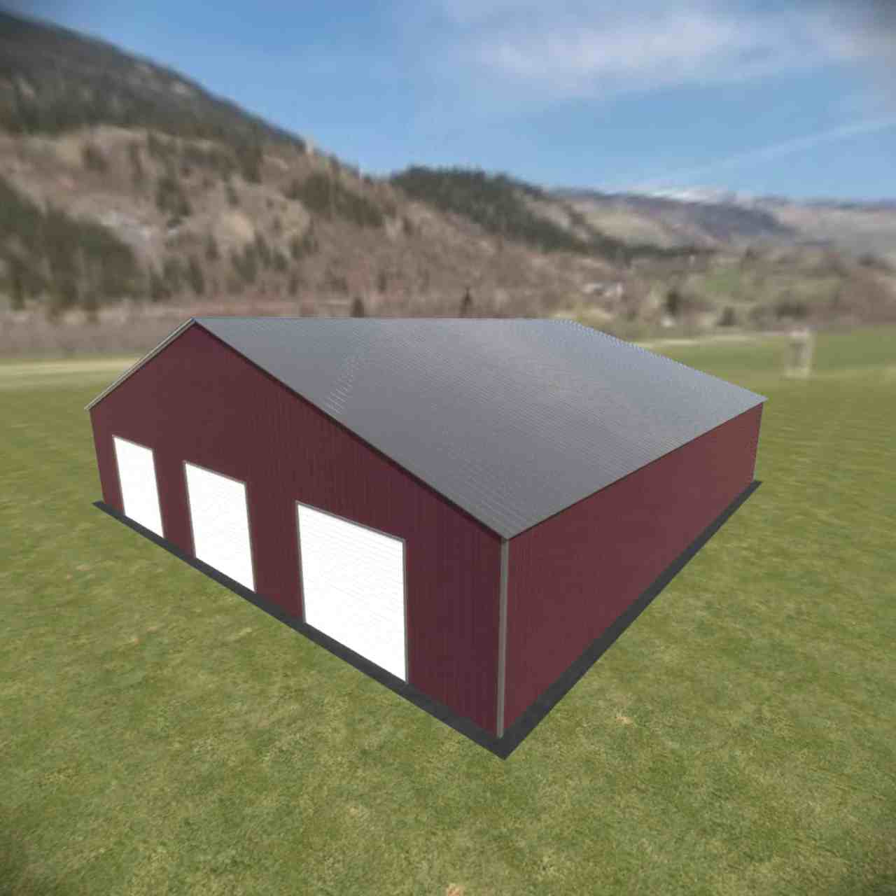 50 wide metal building with 16′ legs and 3 14×14 garage doors with optional deluxe two-tone.