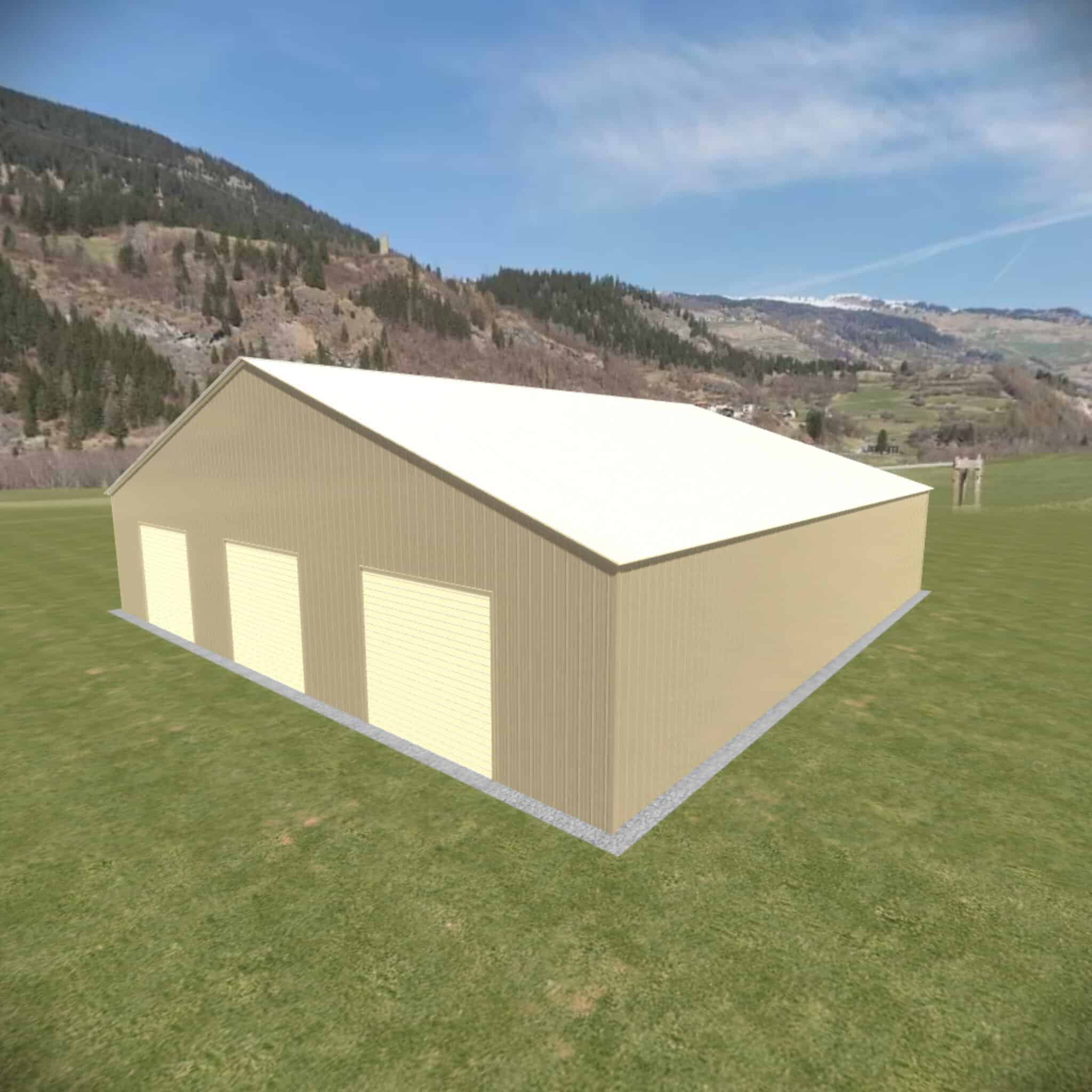 50 wide metal building with 16′ legs and 3 14×14 garage doors with optional deluxe two-tone.