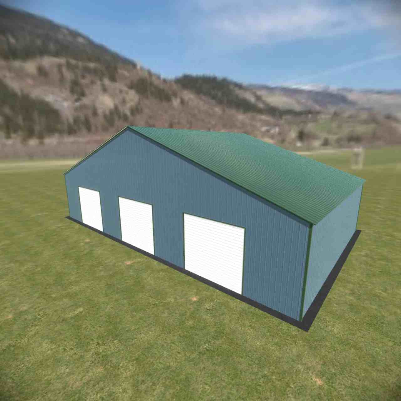 52 wide metal building with 16′ legs and 3 14×14 garage doors with optional deluxe two-tone.