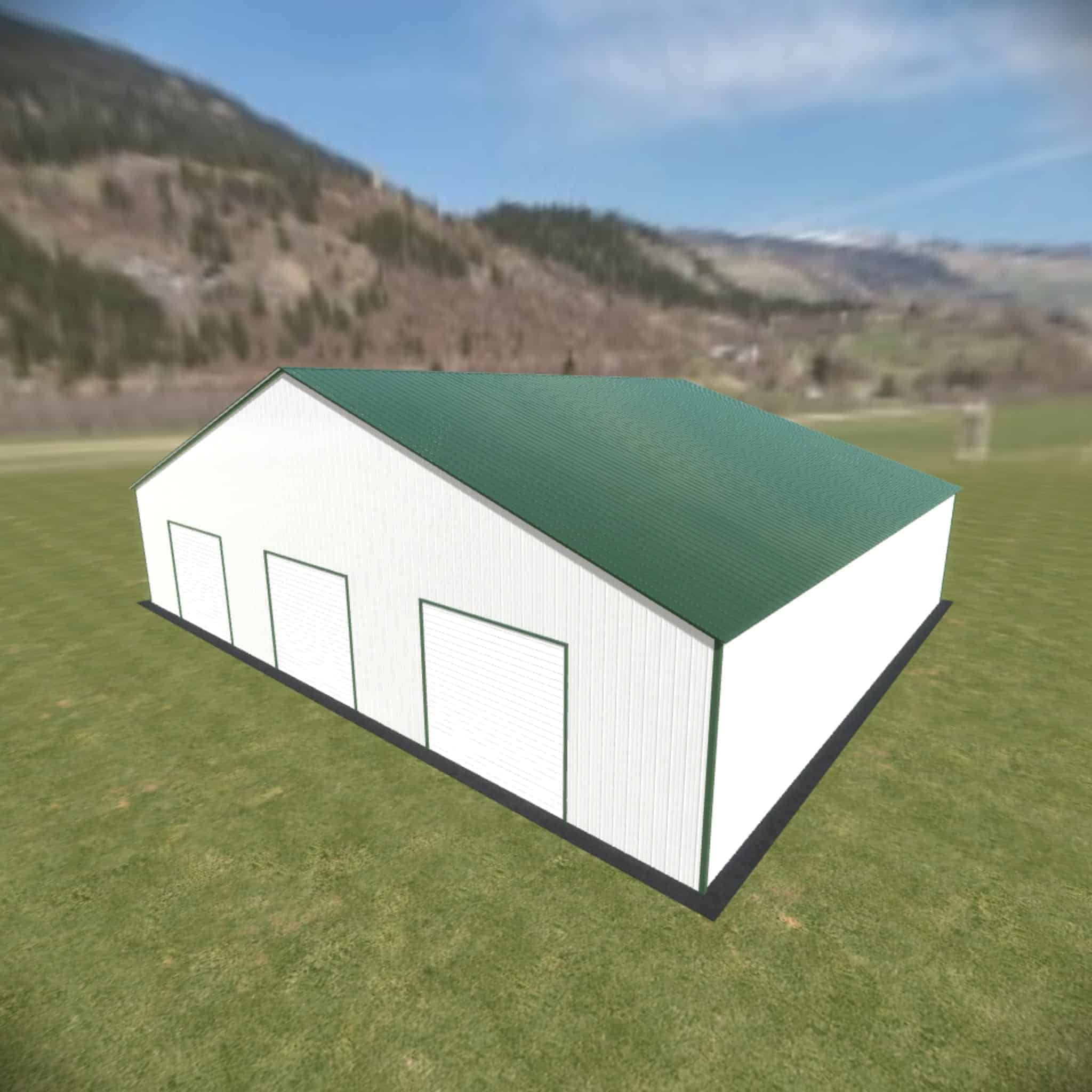 52 wide metal building with 16′ legs and 3 14×14 garage doors with optional deluxe two-tone.