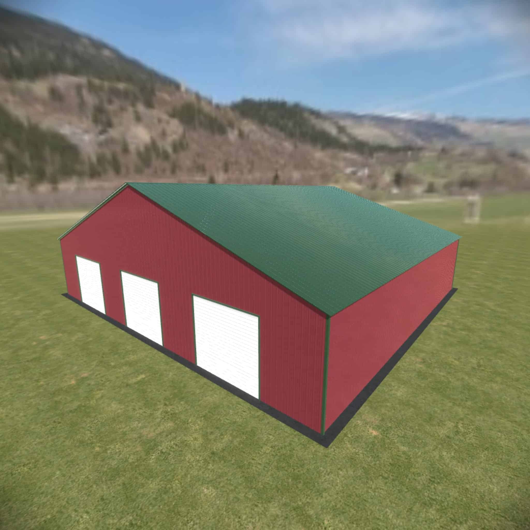 52 wide metal building with 16′ legs and 3 14×14 garage doors with optional deluxe two-tone.