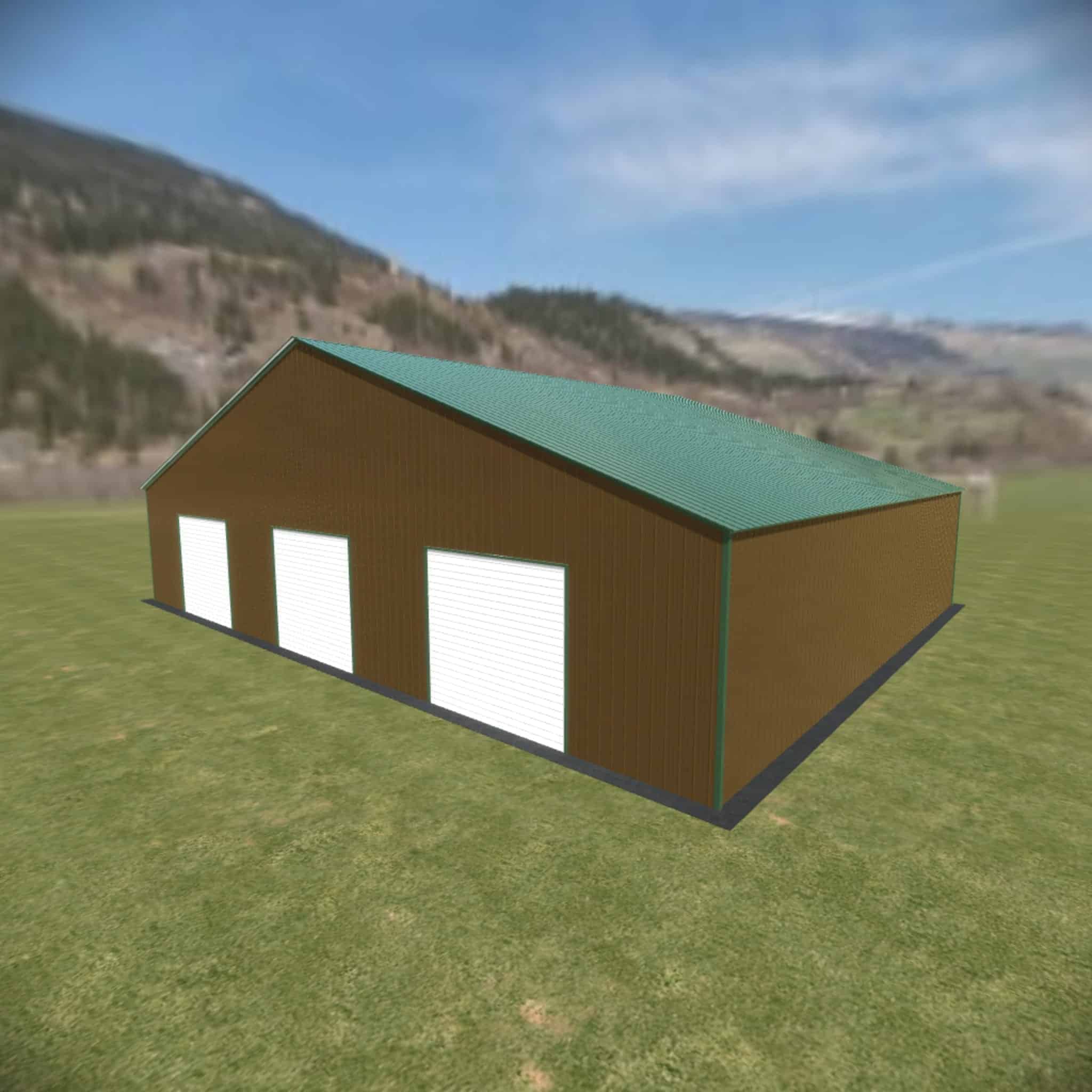 54 wide metal building with 16′ legs and 3 14×14 garage doors with optional deluxe two-tone.