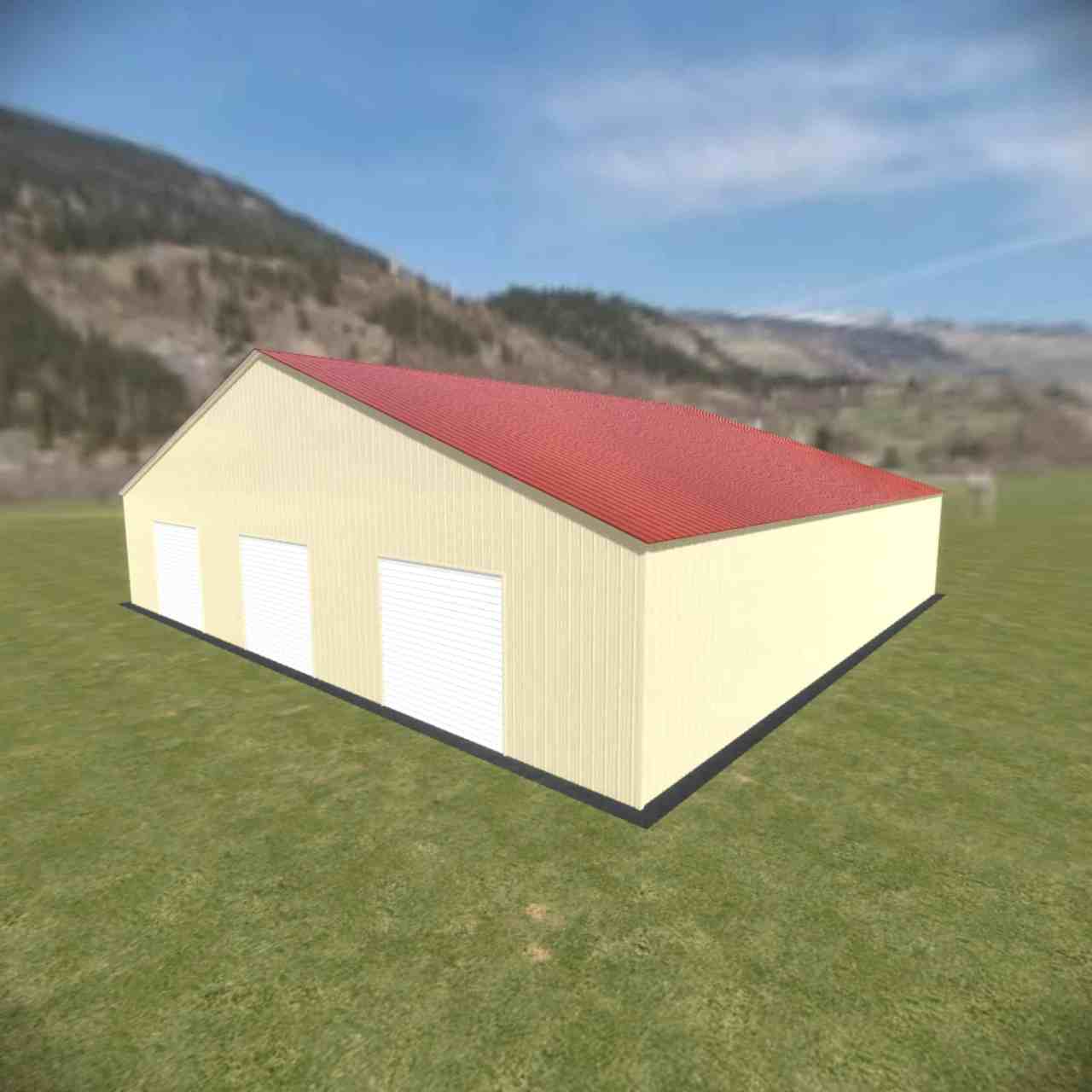 54 wide metal building with 16′ legs and 3 14×14 garage doors with optional deluxe two-tone.