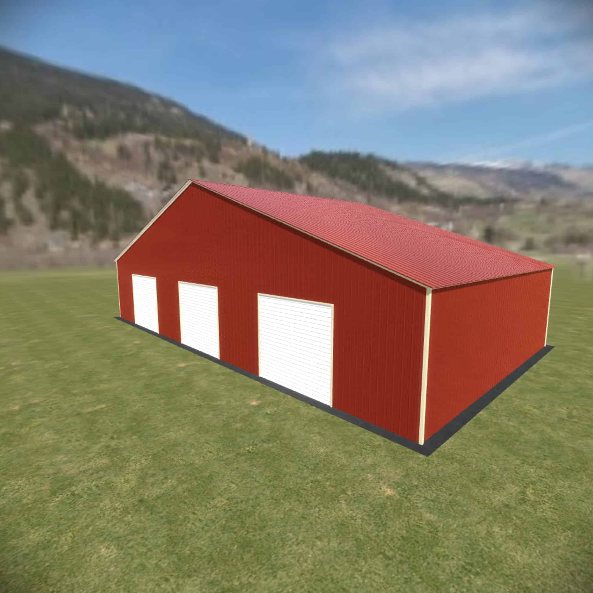 56 wide metal building with 16′ legs and 3 14×14 garage doors with optional deluxe two-tone.