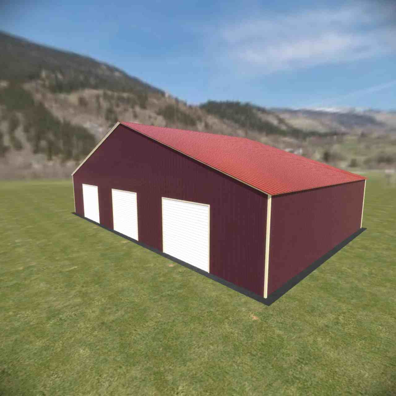 56 wide metal building with 16′ legs and 3 14×14 garage doors with optional deluxe two-tone.