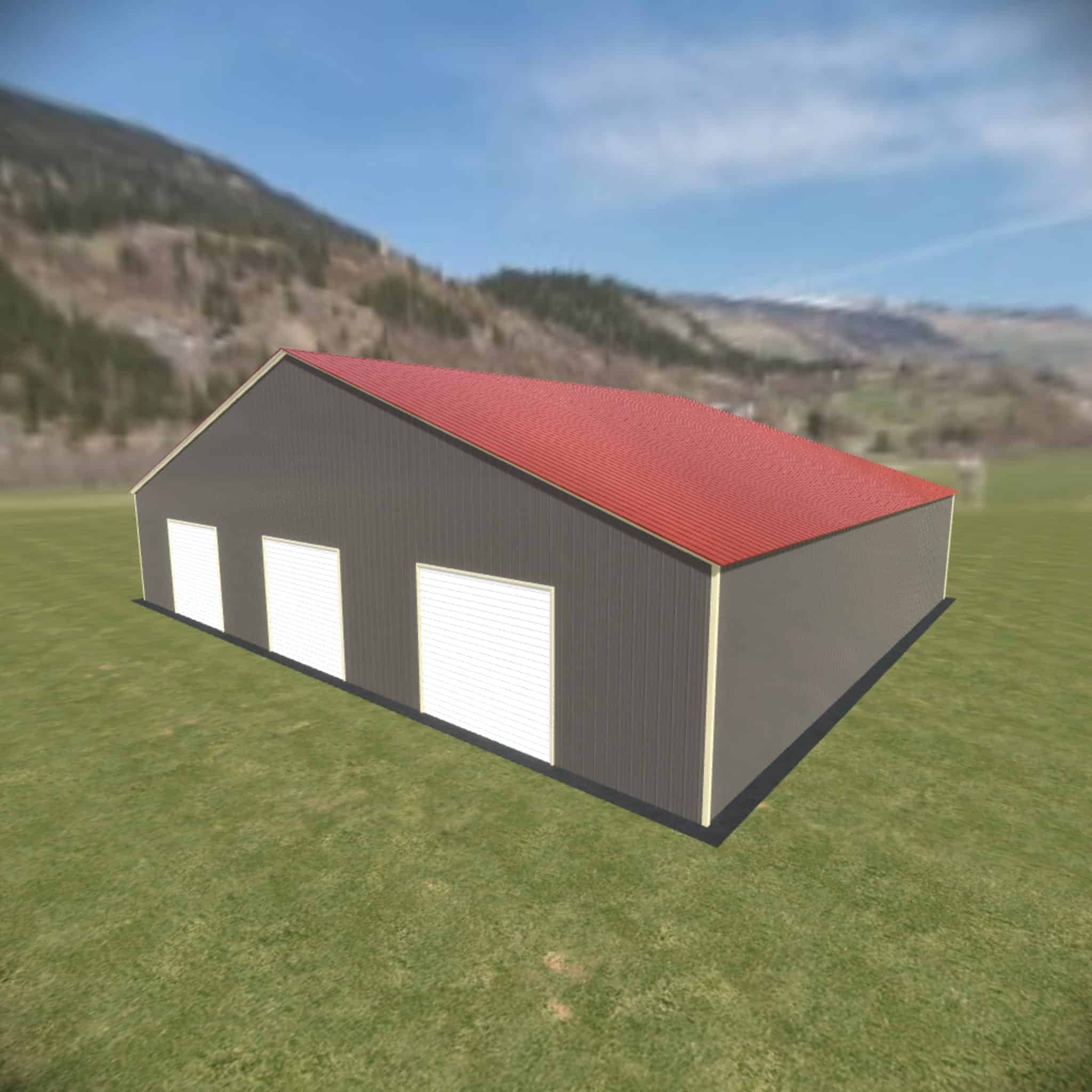 56 wide metal building with 16′ legs and 3 14×14 garage doors with optional deluxe two-tone.