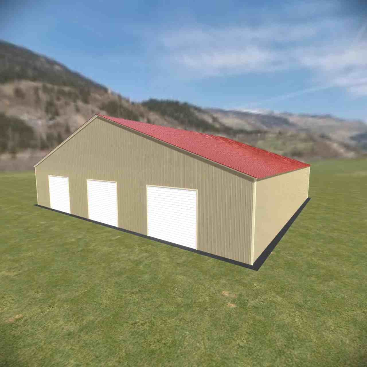 56 wide metal building with 16′ legs and 3 14×14 garage doors with optional deluxe two-tone.