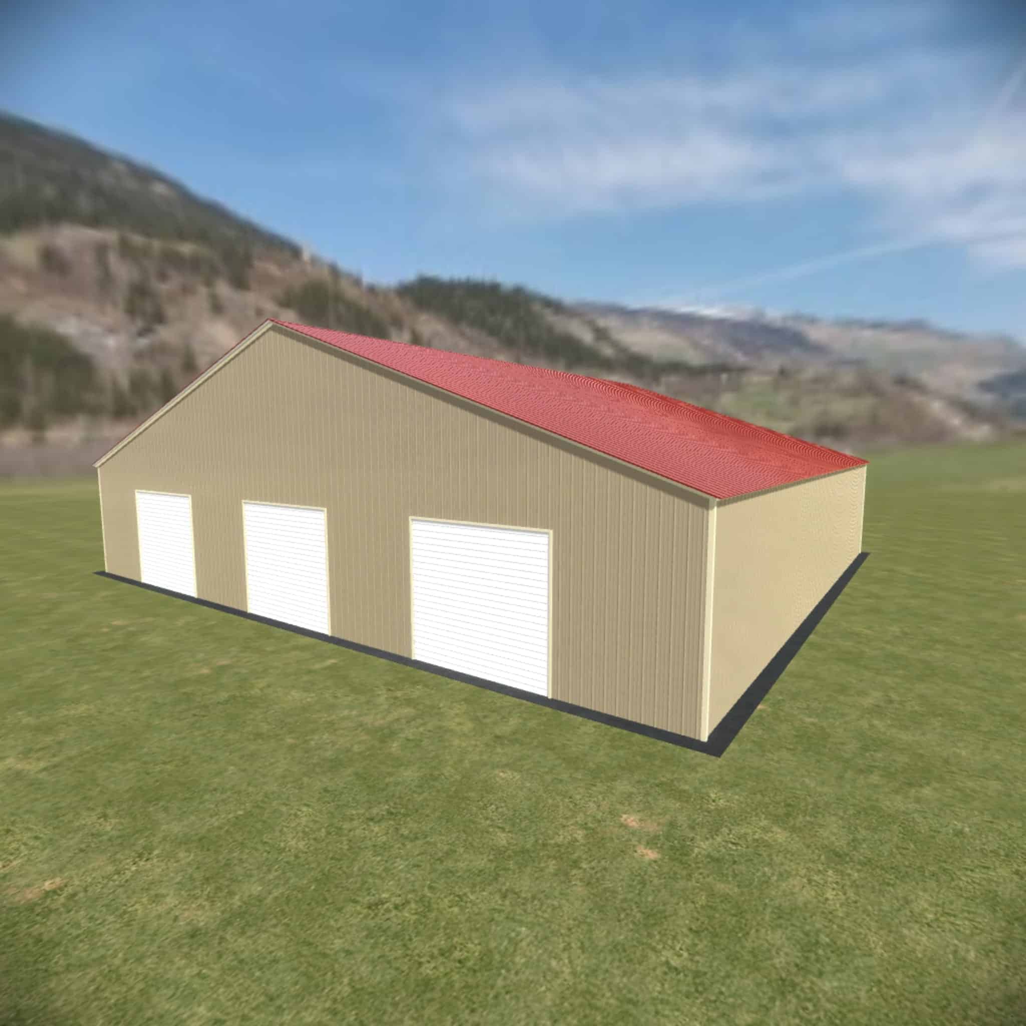 56 wide metal building with 16′ legs and 3 14×14 garage doors with optional deluxe two-tone.