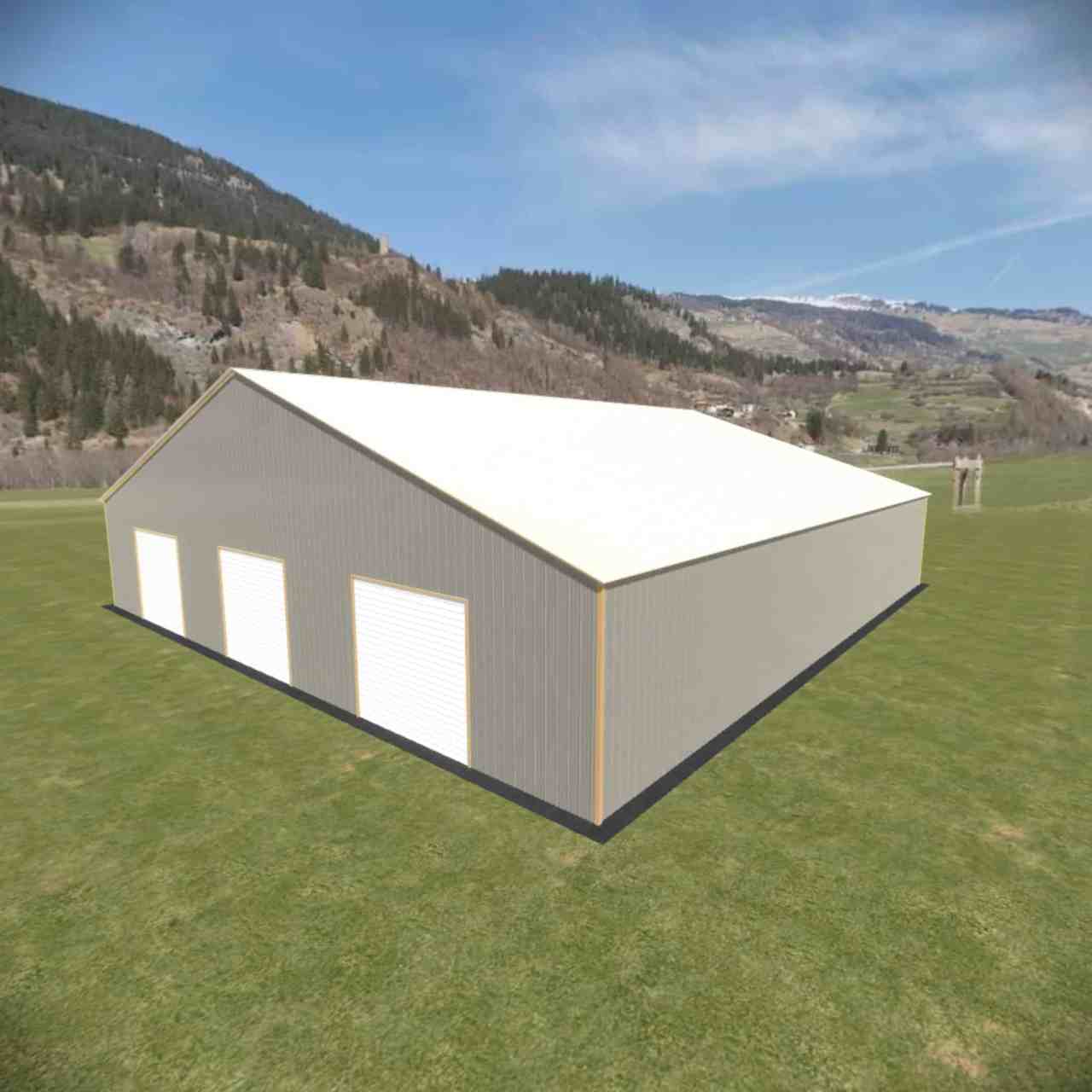 56 wide metal building with 16′ legs and 3 14×14 garage doors with optional deluxe two-tone.
