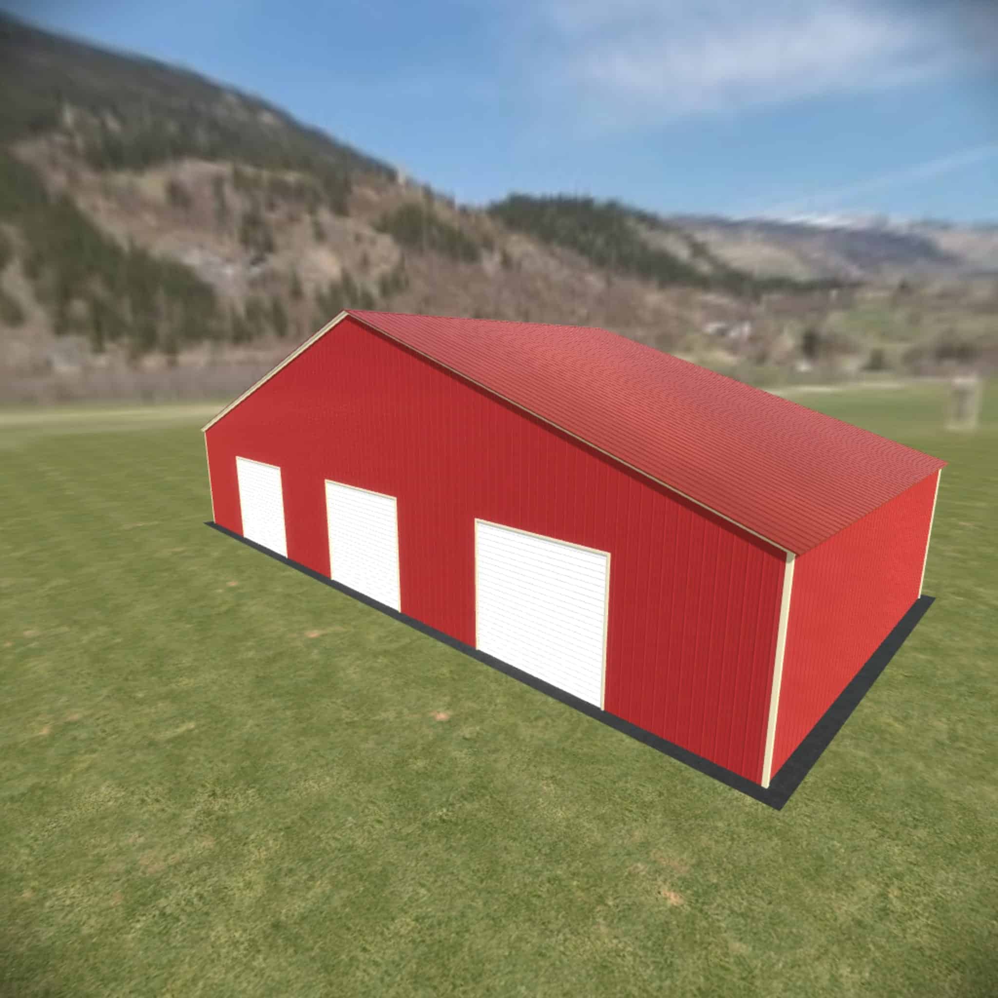 58 wide metal building with 16′ legs and 3 14×14 garage doors with optional deluxe two-tone.