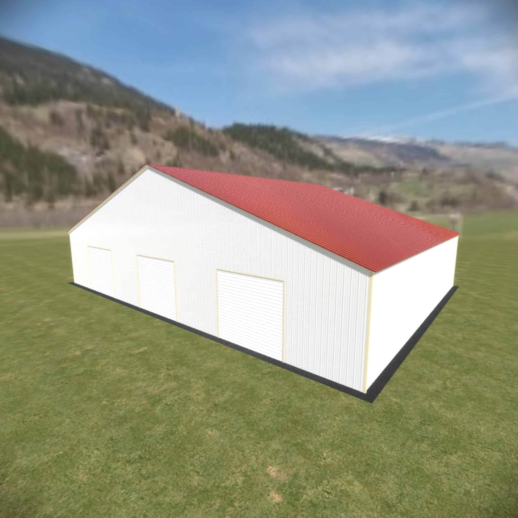 58 wide metal building with 16′ legs and 3 14×14 garage doors with optional deluxe two-tone.