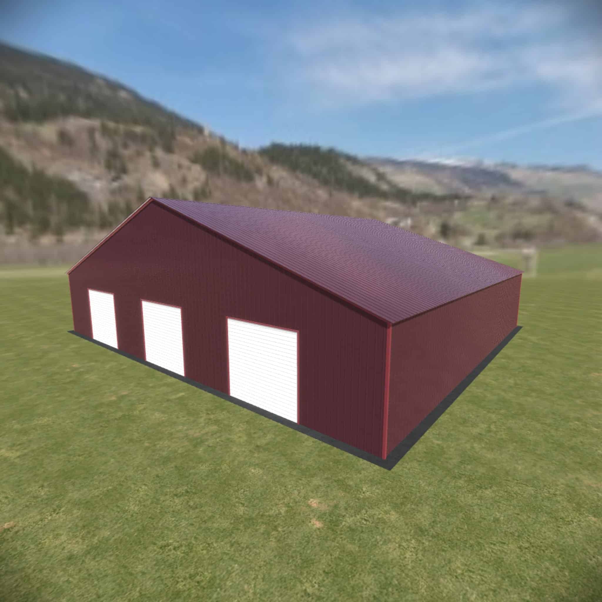58 wide metal building with 16′ legs and 3 14×14 garage doors with optional deluxe two-tone.