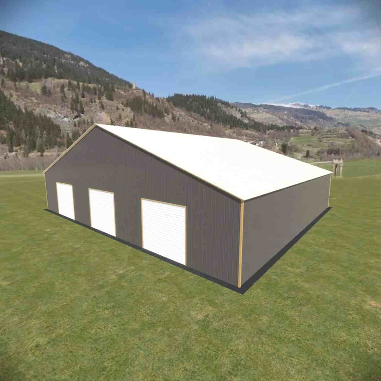 58 wide metal building with 16′ legs and 3 14×14 garage doors with optional deluxe two-tone.